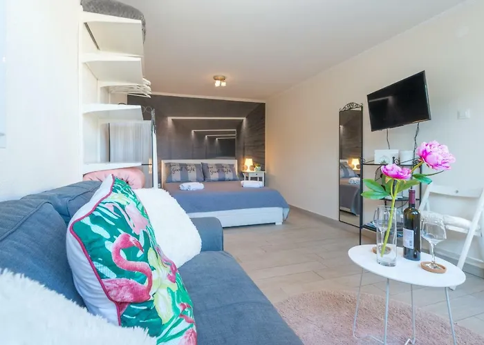 Brand New Studio With Terrace & Parking ferielejlighed ligger 3,1 km fra Ploce-porten og tilbyder indkvartering med fri Wi-Fi i hele ejendommen. Lejlighed består af 1 soveværelser, 1 badeværelser og også et tekøkken.